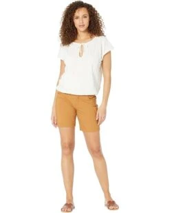 These are perfect travel shorts or just everyday shorts! I’m not a fan of either shorty shorts or Bermuda shorts. These are the perfect length! They run true to size with just a little extra room which is fine by me. The fabric has some stretch but I don’t think they’ll end up looking sloppy after wearing all day. Very excited to find these and will be ordering the navy and earthbound as well. (FYI Prana also makes this Halle short in a 5” version available via Zappos.